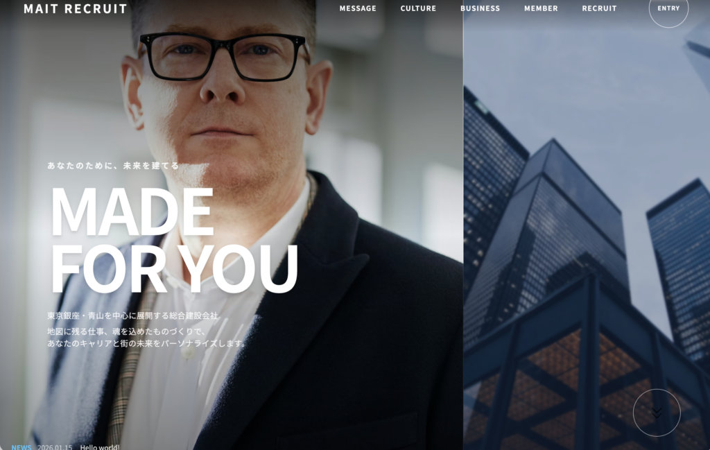 ⑧ページTOPを表示して確認しましょう。アップロードしたデザインをもとに修正されていることが確認できます。